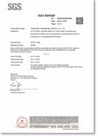 中国初のPV製品設計と供給業者として、風洞テストに合格。